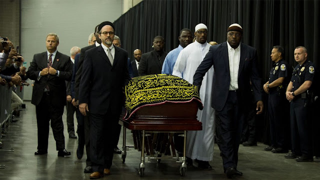 “This is about… sending him off in the very best of fashion,” said the Muslim cleric, adding that Ali would want his supporters to “honor his memory, live his legacy and love each other.”